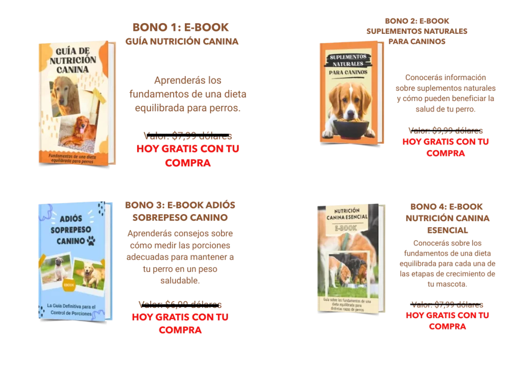 Sí, todas las recetas del E-book están elaboradas con ingredientes naturales y aptos para perros sanos de cualquier tamaño o edad. Además, cada preparación indica si es más recomendable para cachorros, adultos o senior, y qué ingredientes puedes sustituir si tu perro tiene alguna sensibilidad.